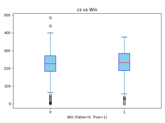 The boxplots above show how key metrics (Kills, Deaths, Assists, CS, Gold) differ between winning and losing matches.